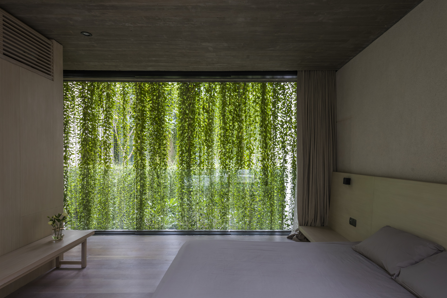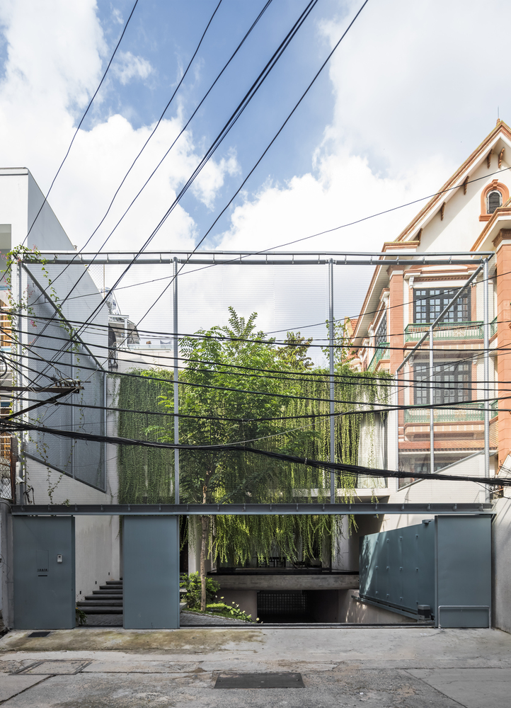 Nhóm thiết kế đã tạo ra một lớp vỏ thép mỏng giúp ngăn cách một cách tương đối các không gian riêng tư nhưng không tạo cảm giác tù túng. Trong tương lai, dây leo sẽ phát triển tỏa ra trên toàn bộ hệ thống lưới thép và tạo mảng xanh tươi mát cho ngôi nhà thay vì bê tông, sắt thép lạnh lẽo.