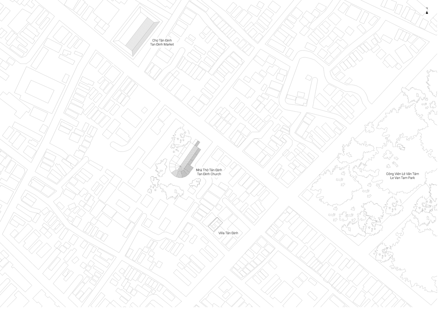 Một đặc điểm nổi bật khác, vị trí tiếp giáp với các công trình kiến trúc lịch sử của Sài Gòn như Nhà thờ Tân Định, Chợ Tân Định. Ngoài ra, căn nhà nằm giữa quận 3 được coi là khu vực “đông đúc” nhất của thành phố. Vào sáng sớm hay chiều tà, bạn có thể nghe rõ tiếng chuông từ Nhà thờ, hoặc chỉ cần bước ra khỏi nhà vài bước chân là bạn có thể trực tiếp chạm vào không khí “hẻm” Sài Gòn, có thể xem là một đặc sản của Văn hóa đô thị.