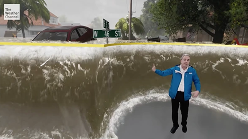 Kênh truyền hình thời tiết The Weather Channel đã sử dụng công nghệ phim trường ảo để hiển thị những ảnh hưởng đáng sợ tiềm tàng của cơn bão Florence đang tiến đến bờ biển Carolina.