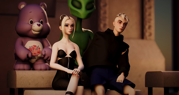 Một phiên bản “avatar” của ca sĩ Dua Lipa đã trình diễn ảo tại show diễn, như một minh chứng về sự ủng hộ của cô ấy đối với nhãn hiệu yêu thích của mình. Phim trường ảo cũng được sử dụng để tạo nhiều bối cảnh, người mẫu, khán giả và các phiên bản ảo của các trang phục trình diễn trong show diễn.
