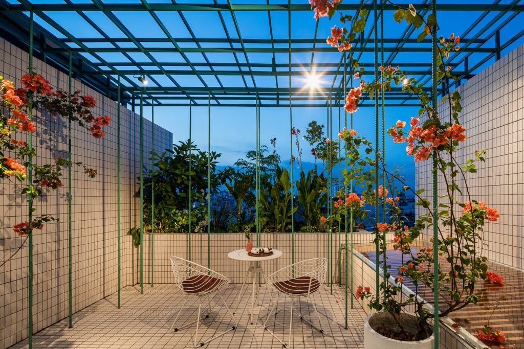 Nhóm thiết kế muốn tạo ra một ngôi nhà được bao quanh bởi những khu vườn nhiệt đới. Kết cấu sàn lửng được sử dụng cho không gian tầng trệt để loại bỏ cột ở vị trí góc cạnh, từ đó tạo sự thông suốt kết nối giữa nhà và sân vườn.