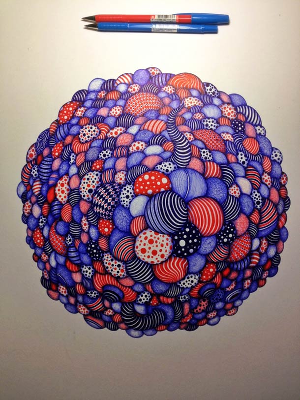Bút bi, vật dụng không thể thiếu của chúng ta mỗi khi mang bên mình. Với riêng 2 màu chủ đạo là xanh và đỏ, artist Wang 2mu đến từ Thượng Hải, Trung Quốc đã tạo nên những bức tranh tỉ mỉ đến từng chi tiết. Hãy cùng RGB xem qua quá trình để tạo nên nó nhé!