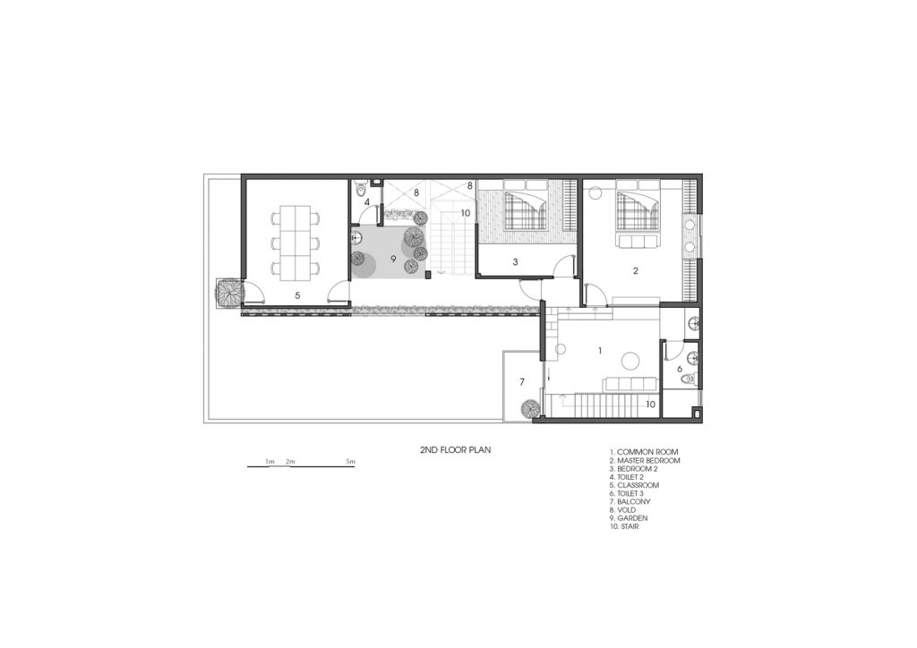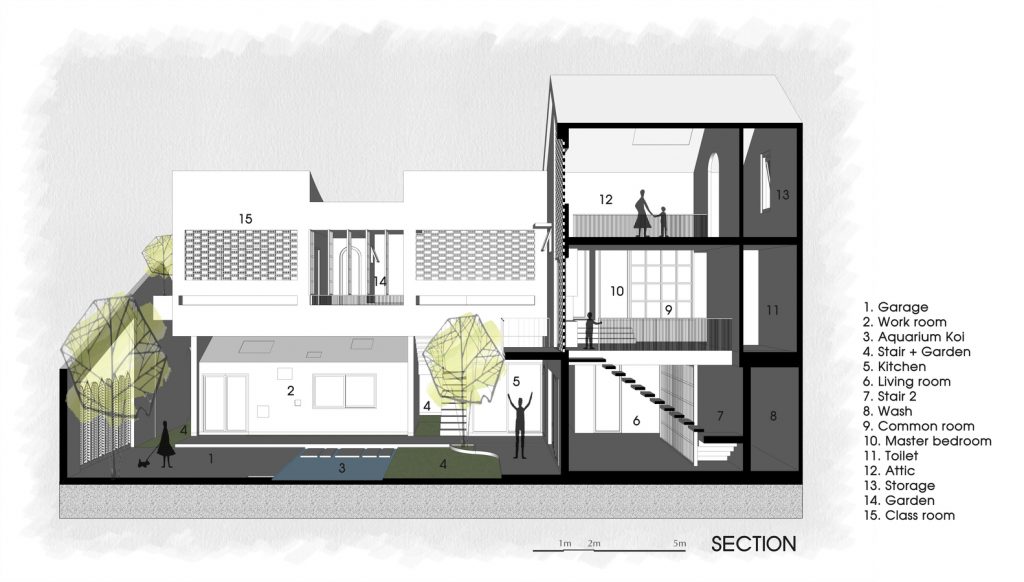 Ngoài ra, ngôi nhà còn có một số khu vườn nhỏ bên dưới các khoảng trống. Bên cạnh yếu tố thẩm mỹ, những khoảng trống này còn được kết hợp với hệ thống cửa tạo thành hệ thống thông gió, đối lưu không khí rất quan trọng cho ngôi nhà.