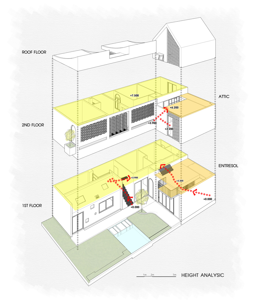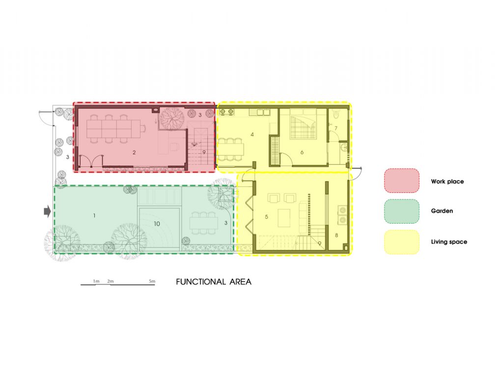 Với mục tiêu phải đảm bảo gió được lưu thông xuyên suốt Wind’s House, vì vậy các kiến trúc sư đã chia ngôi nhà thành 3 khối chức năng chính ngăn cách với nhau bởi cầu thang và không gian sân vườn tạo ra những khoảng trống đối lưu đến mọi ngóc ngách trong nhà.