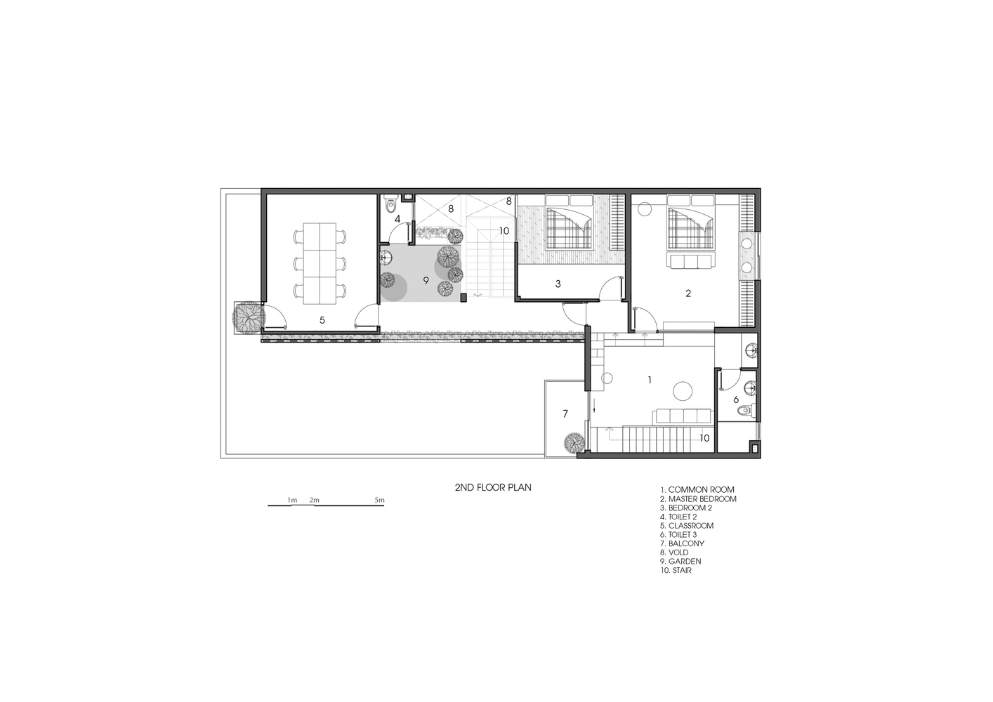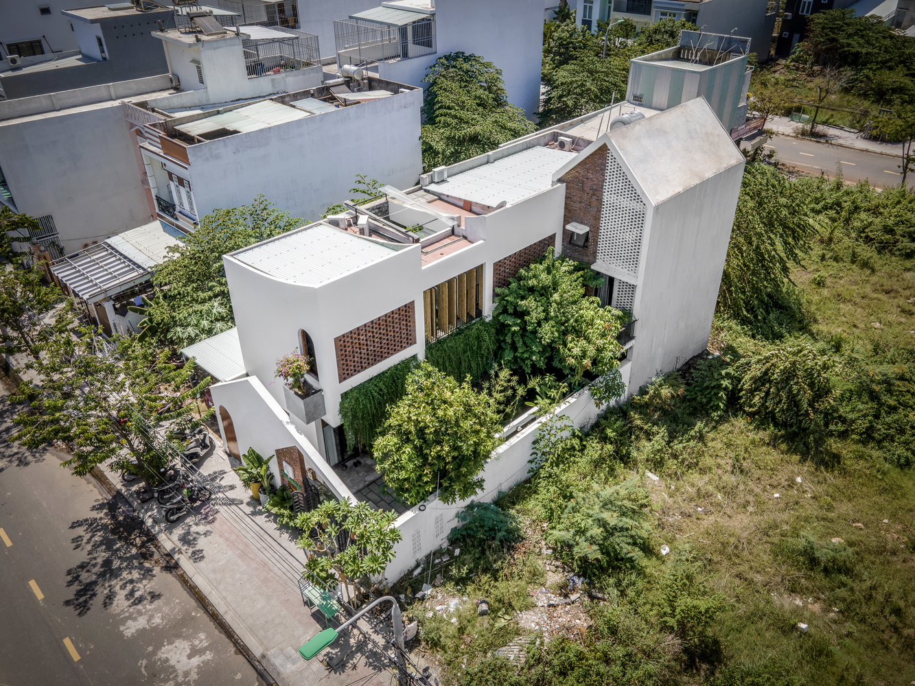 Ngoài ra, ngôi nhà còn có một số khu vườn nhỏ bên dưới các khoảng trống. Bên cạnh yếu tố thẩm mỹ, những khoảng trống này còn được kết hợp với hệ thống cửa tạo thành hệ thống thông gió, đối lưu không khí rất quan trọng cho ngôi nhà.