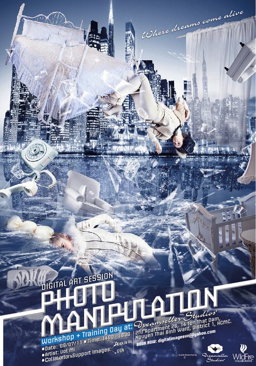 Workshop Photo Manipulation và một ngày học thử khóa học Digital Art – Photo Manipulation của Họa sĩ Manipulation : Uot Mi ,cùng với sự kết hợp của 2 Nhiếp ảnh gia : Alexis Vũ Photographer và Vlk Photographer sẽ mở ra cho bạn một cái nhìn mới về thể loại nghệ thuật này .
