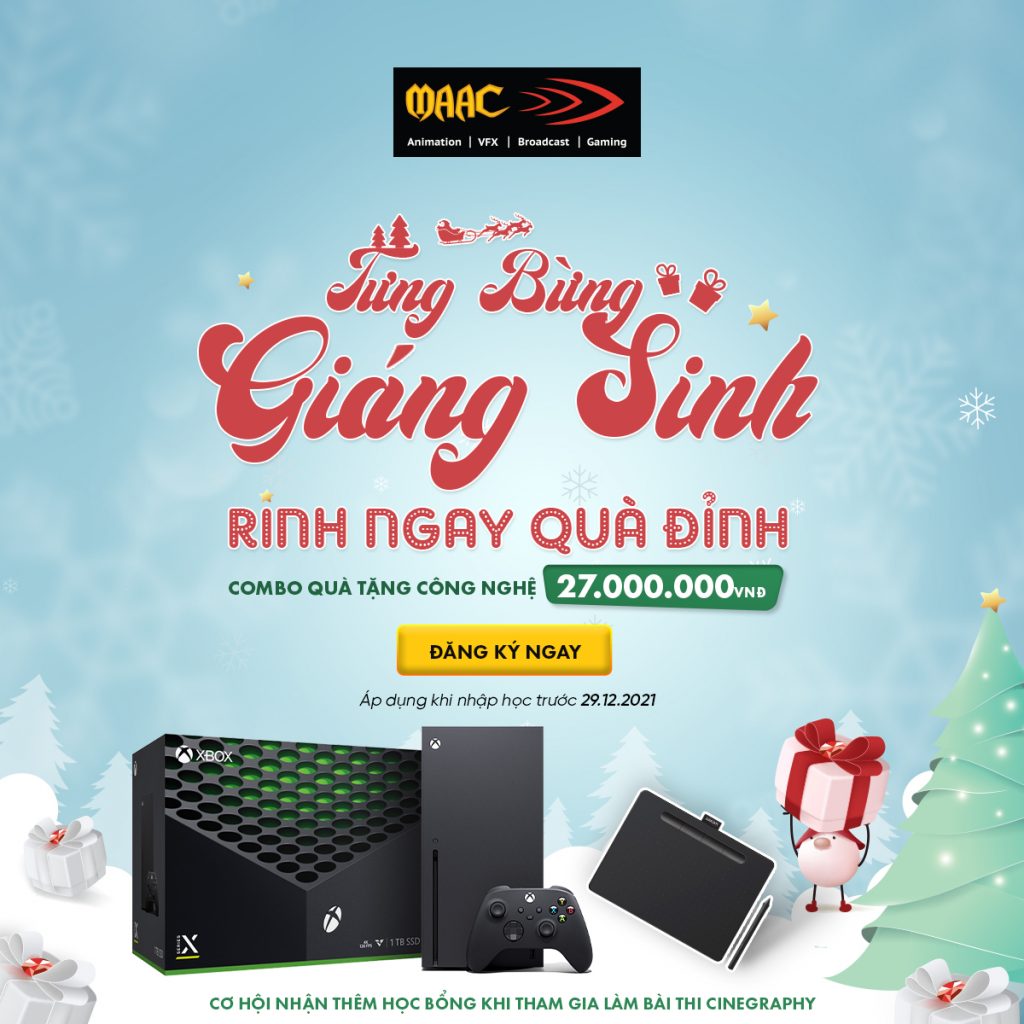 Bạn đã sẵn sàng để săn quà đỉnh trong mùa lễ hội Giáng sinh tưng bừng này chưa? Combo quà tặng công nghệ siêu chất bao gồm 1 máy chơi game Xbox Series X và 1 bảng vẽ cảm ứng Wacom Intuos với tổng giá trị 27.000.000 vnđ kèm các suất học bổng giá trị từ Học viện MAAC đang chờ bạn “rinh trọn” về nhà ngay trong mùa Giáng sinh năm nay.