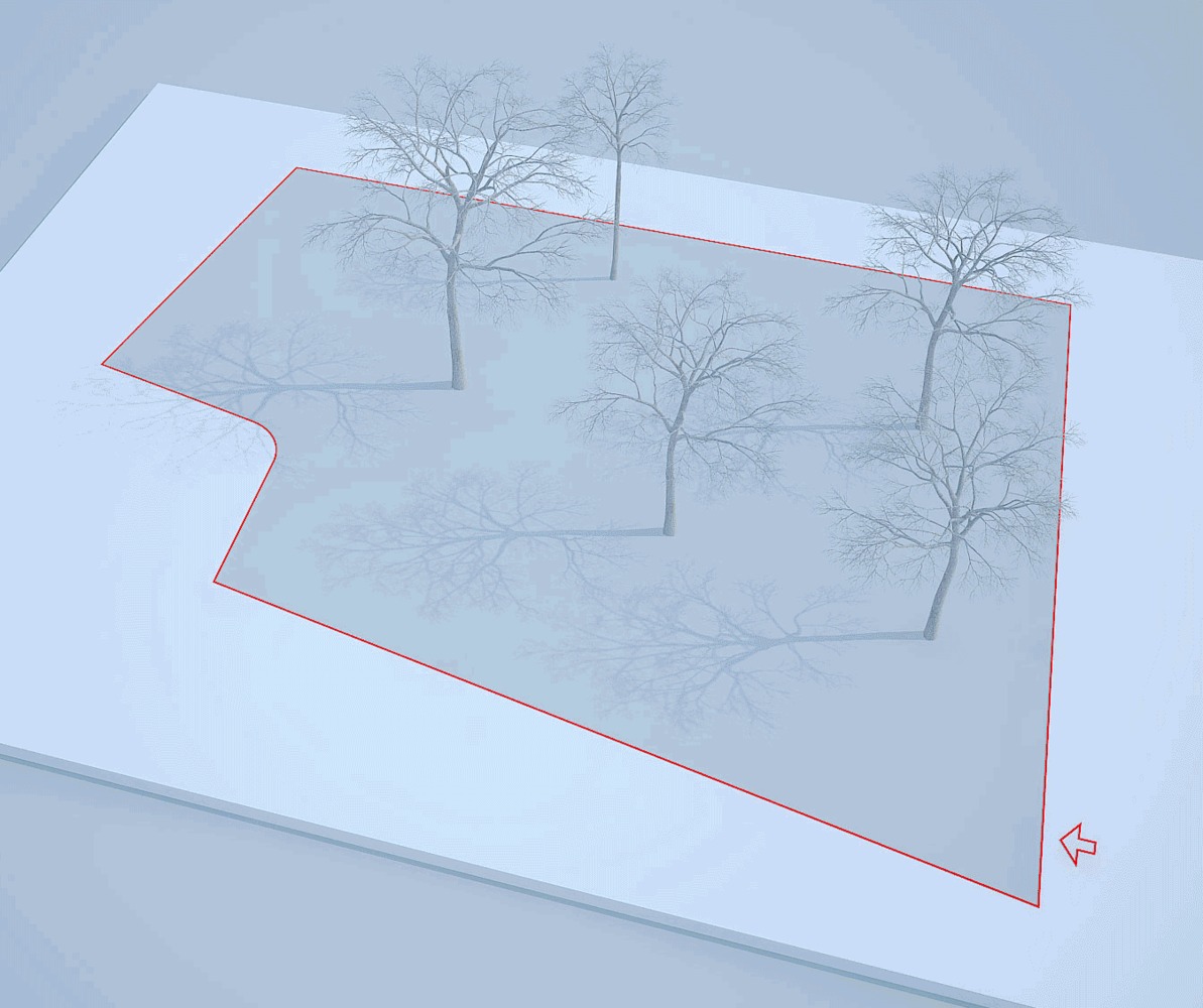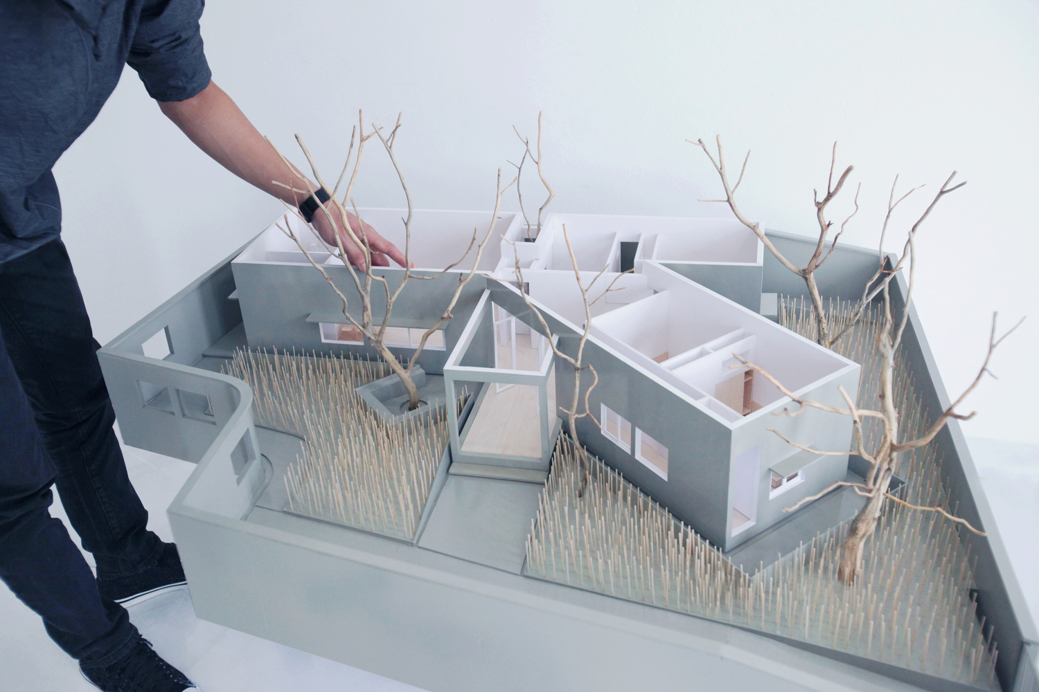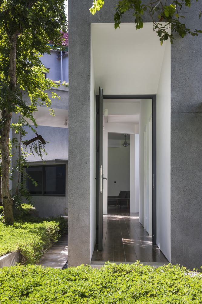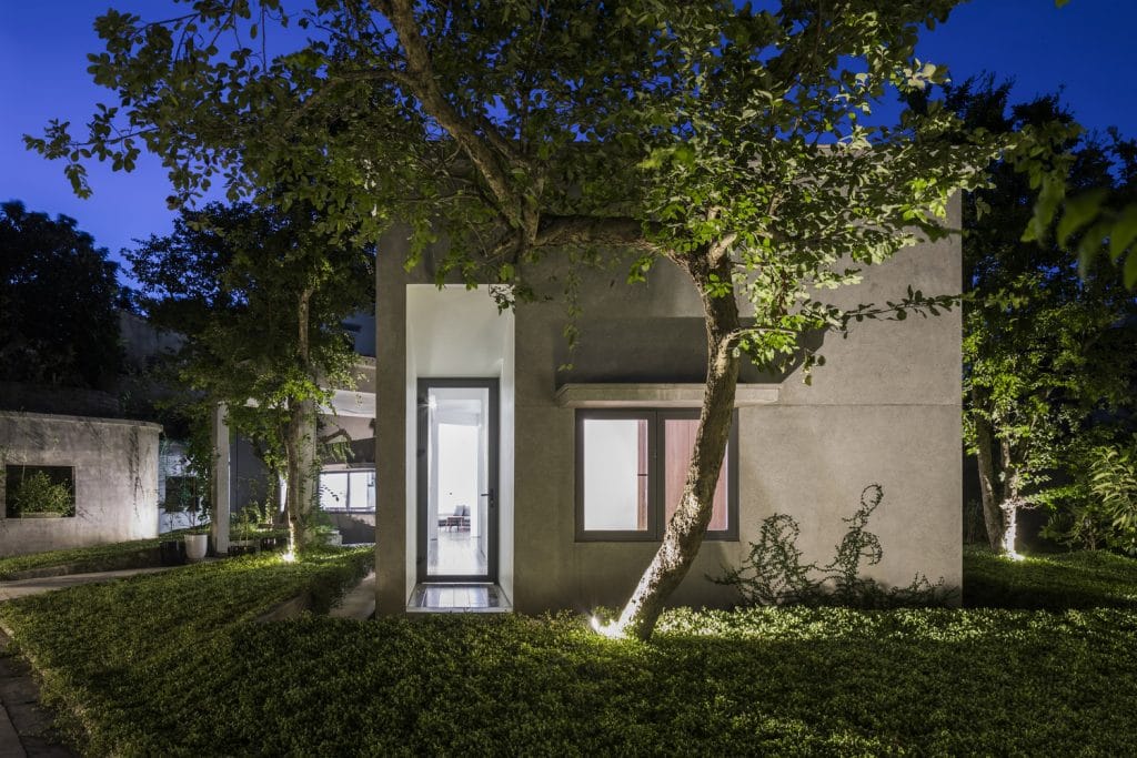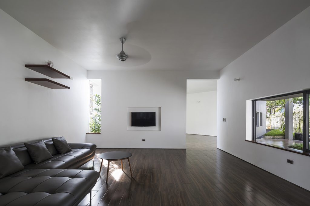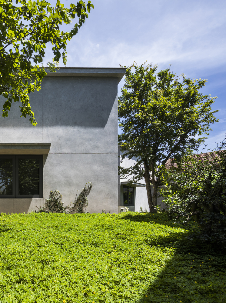 Các khoảng trống được tạo ra giữa các cây lớn, được tính toán để tránh ảnh hưởng đến cây. Tán lá bao phủ toàn bộ không gian được coi như mái nhà thứ hai của công trình. Các không gian bên trong kết nối với nhau bằng hành lang trung tâm của ngôi nhà và khu vườn. Các khối đan xen nhiều mặt tạo nên những khe đón gió hiệu quả cho tòa nhà, thông gió xuyên thấu.