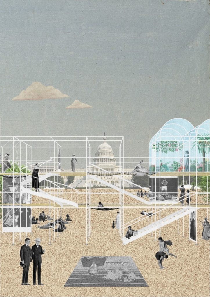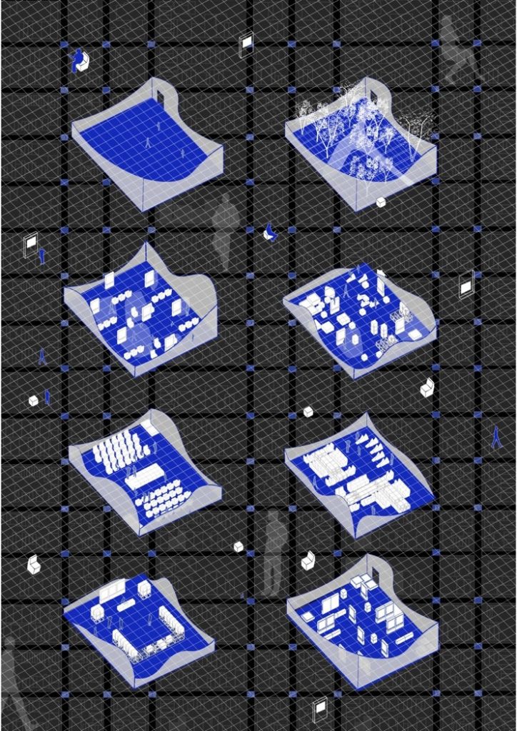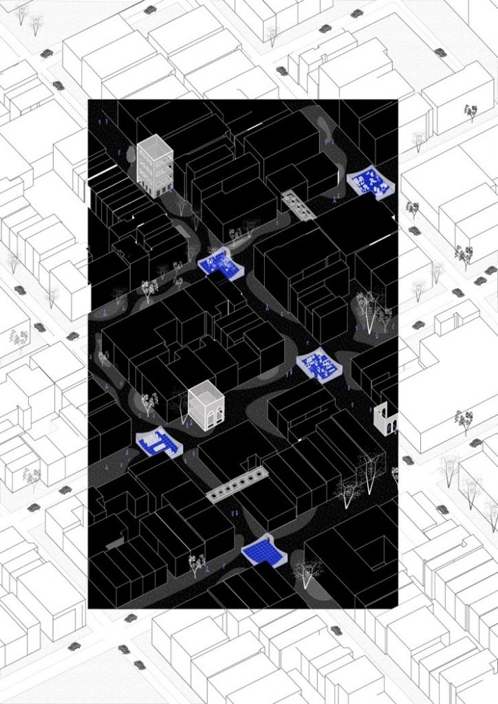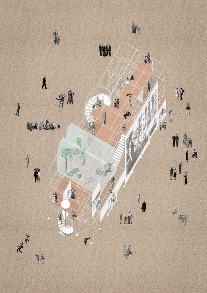 Trong một thế giới không ngừng thay đổi, không gian công cộng cần được hình dung lại, diễn giải và phát triển theo những nhu cầu liên tục được đổi mới của con người. Phương án thiết kế đề xuất gắn kết một cấu trúc tạm thời được làm bằng hệ giàn giáo nhằm làm sống động hơn những không gian công cộng đã có. Những khoảng không gian chung này (trung tâm thành phố, quảng trường, bờ sông…) được nâng tầm giá trị không chỉ bởi những lớp cao độ được thêm vào mà còn vượt ra ngoài giới hạn chu vi bằng yếu tố kỹ thuật số giúp khai thác những tiềm năng của không gian như một nền tảng xã hội lâu dài.