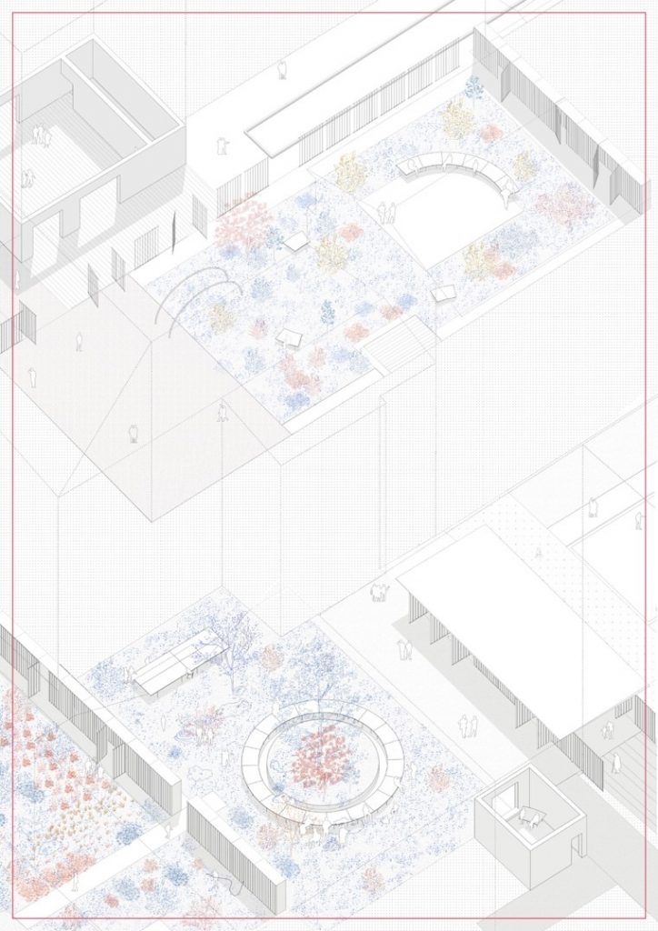 Trong suốt thời kỳ giãn cách xã hội, sân trong cũng như các không gian mở khác của ngôi nhà đã được sử dụng như một phương án thay thế cho các không gian công cộng. Bằng cách liên kết các khoảng sân tầng trệt, có thể mang đến nhiều trải nghiệm và mục đích sử dụng khác nhau cho người dân.
