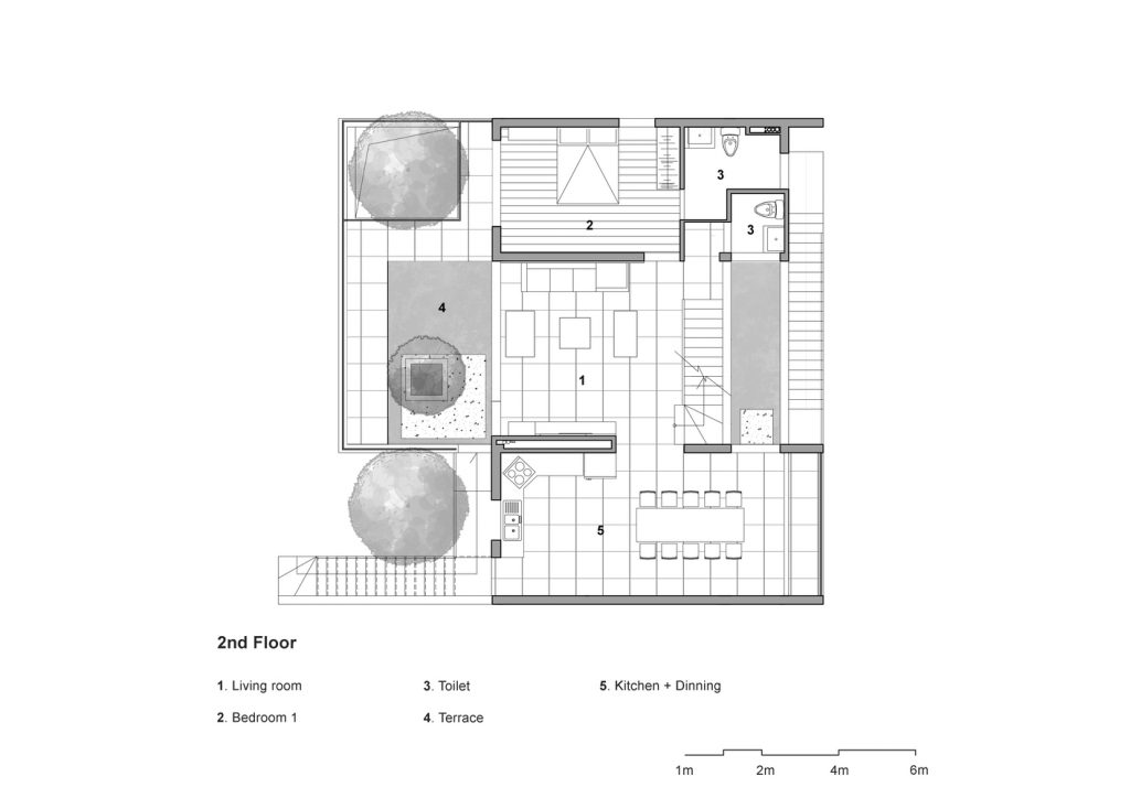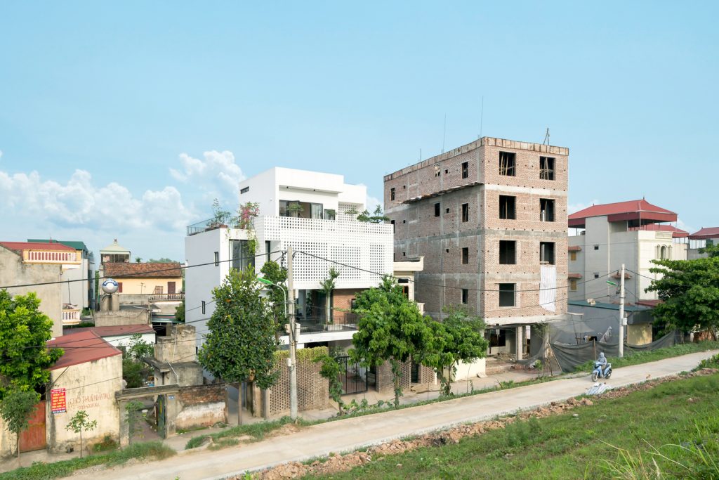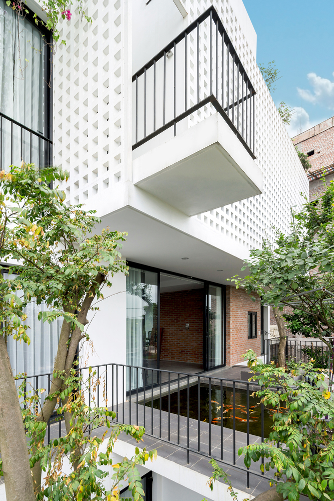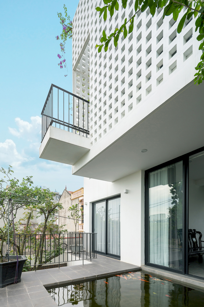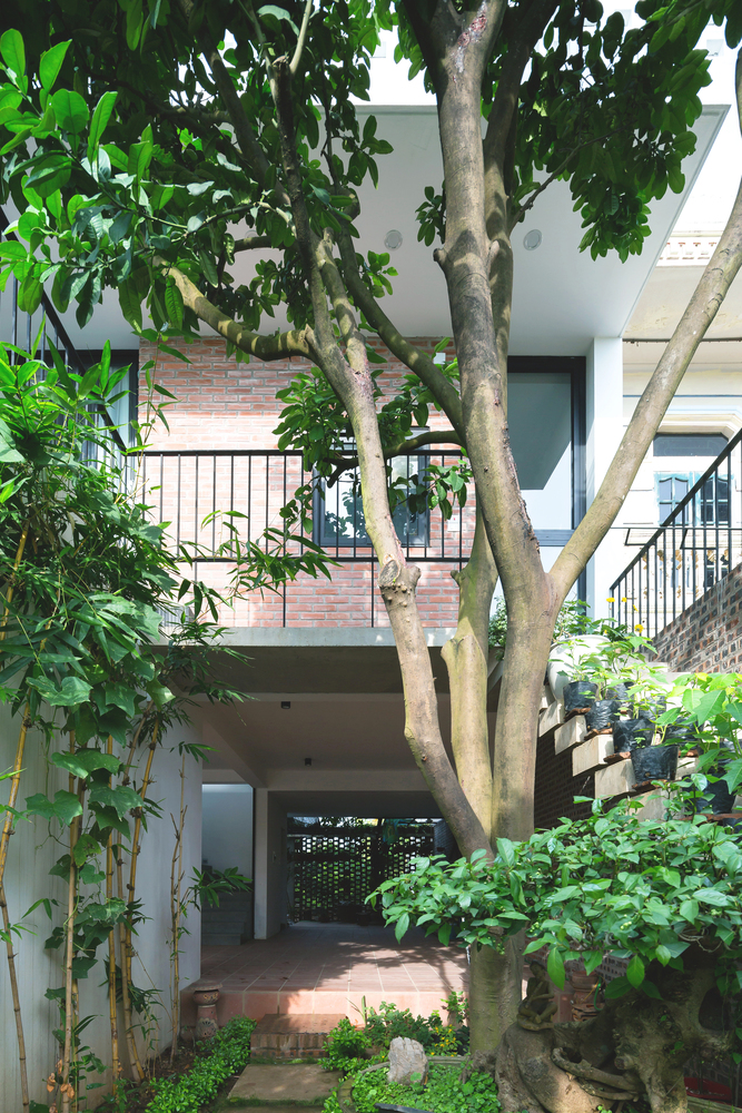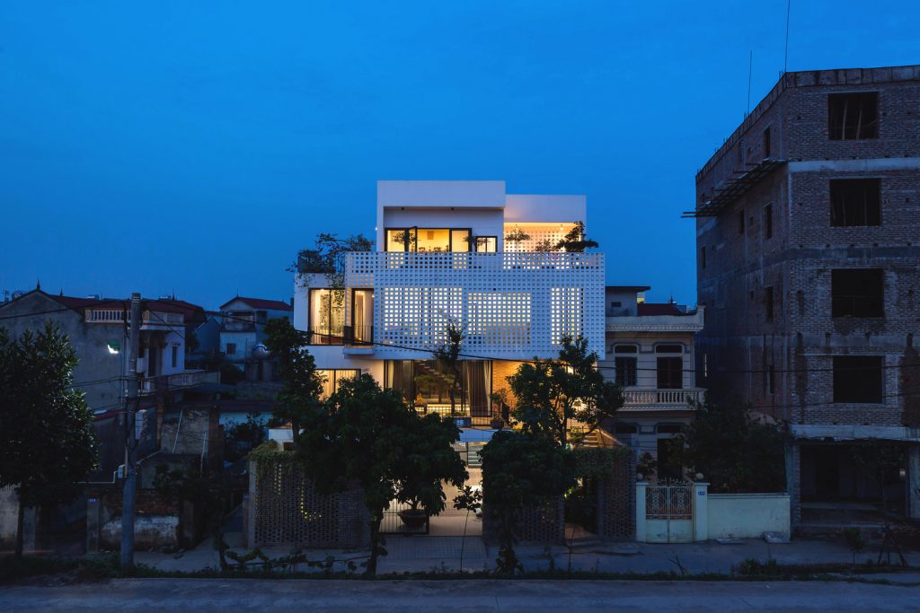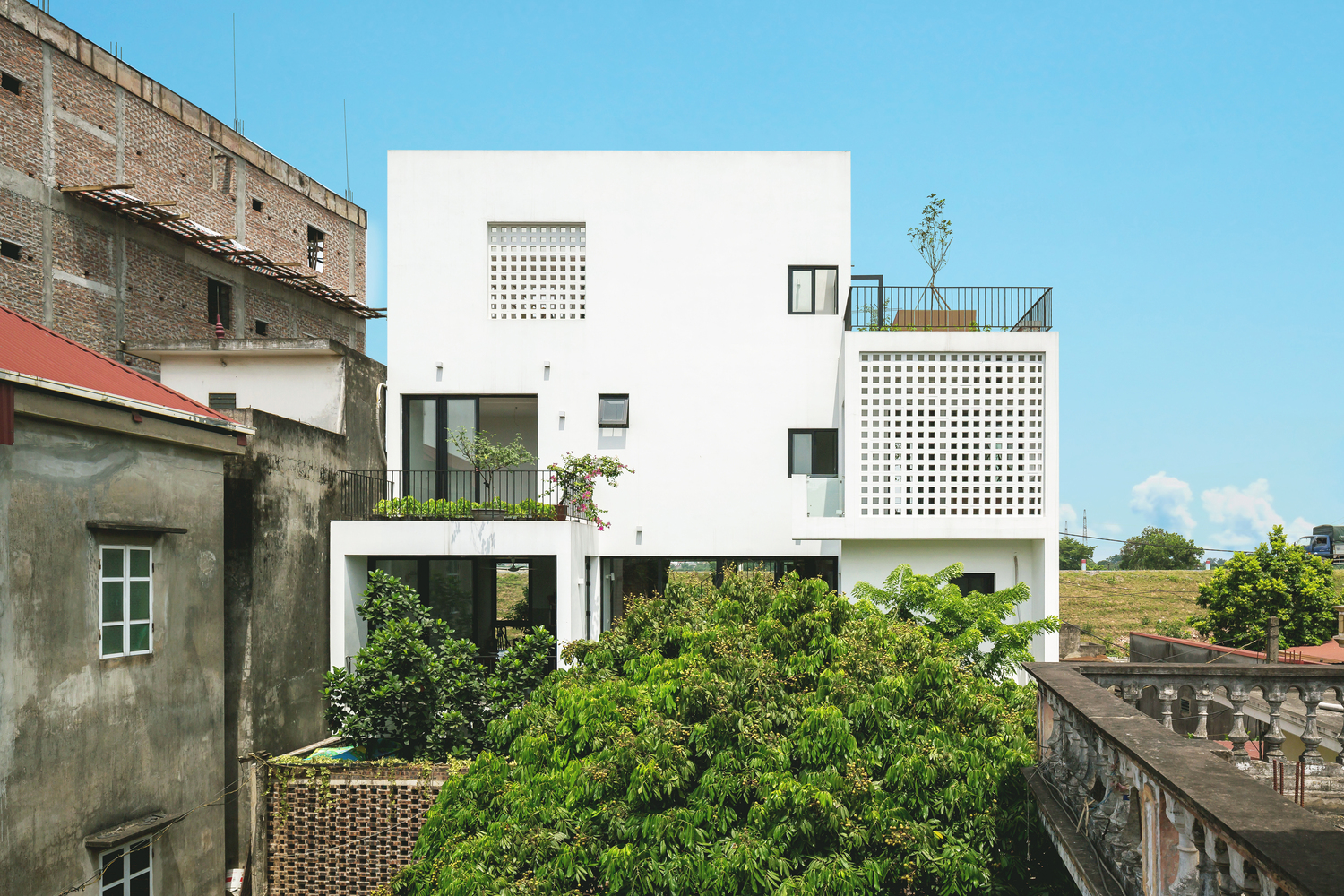 Được thiết kế dành cho hai gia đình trẻ, ba thế hệ và tám nhân khẩu sinh sống, là một hộ gia đình có truyền thống văn hóa đồng bằng Bắc Bộ, yêu thích không gian thoáng đãng, nhiều cây xanh và gió. Ngôi nhà chia không gian chức năng thành 4 khối chính và 4 tầng, được thiết kế đan xen các khối kiên cố tạo khoảng trống bao quanh bằng các vật liệu thông gió tạo sự kết nối, đưa nắng gió vào công trình.