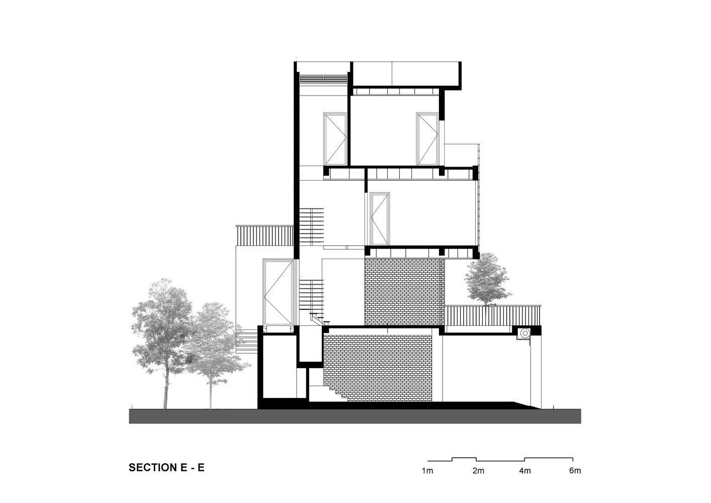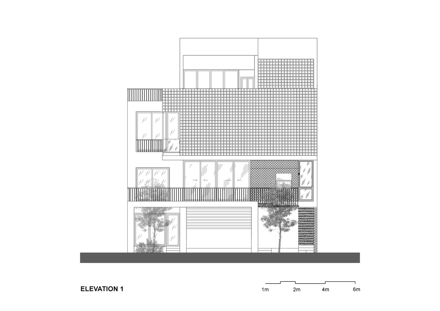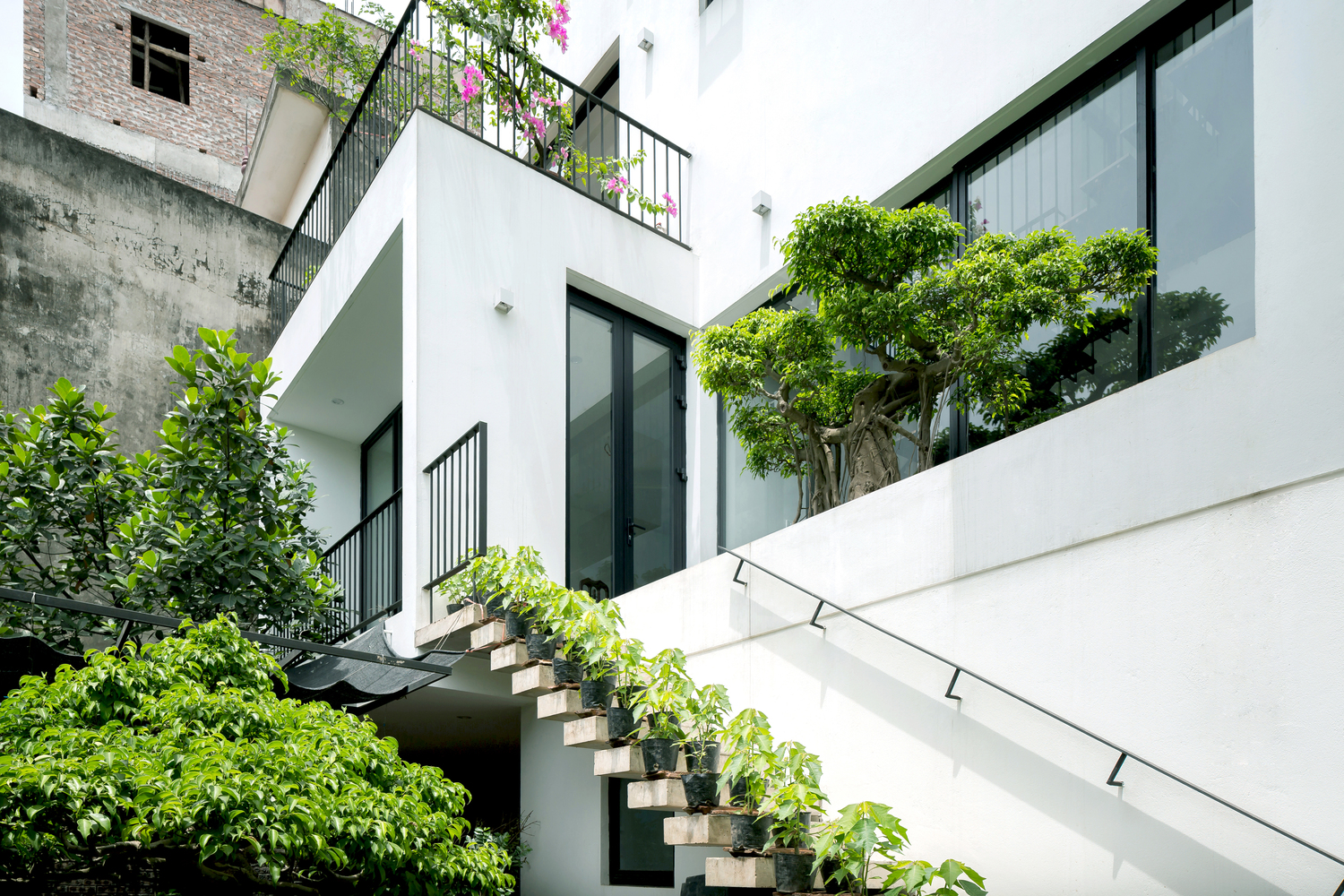 Được thiết kế dành cho hai gia đình trẻ, ba thế hệ và tám nhân khẩu sinh sống, là một hộ gia đình có truyền thống văn hóa đồng bằng Bắc Bộ, yêu thích không gian thoáng đãng, nhiều cây xanh và gió. Ngôi nhà chia không gian chức năng thành 4 khối chính và 4 tầng, được thiết kế đan xen các khối kiên cố tạo khoảng trống bao quanh bằng các vật liệu thông gió tạo sự kết nối, đưa nắng gió vào công trình.
